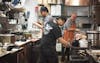 Jorge Cortez grabs the ingredients to fry chicken for an upcoming order Tuesday afternoon at the Clustertruck restaurant on E. 10th Street. Clustertruck serves over 100 different food items fresh from the kitchen from the moment a customer orders.