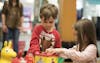 Makenna Warner and Quincey Reed play with the Curious George jack-in-the-box at the Toy Chest. The Toy Chest in the college mall held an event Friday night where kids could play with toys and meet Curious George.