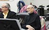 Chilean composer Juan Orrego-Salas laughs as the Bloomington Orchestra praises him for his piece. The orchestra practiced Orrego-Salas' music Tuesday night at Bloomington High School South.