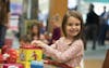 Makenna Warner plays with the Curious George jack-in-the-box at the Toy Chest. The Toy Chest in the college mall held an event Friday night where kids could play with toys and meet Curious George.
