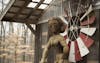 A wood carving created by David Seastrom's good friend sits against the woodshop on his property. Seastrom also builds and carves wood from the forest behind his house.