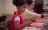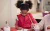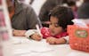 Sarang Likite and his daughter Kaeya from India make Chinese New Year crafts. The crafting event took place at the Mathers Museum of World Culture Sunday afternoon.