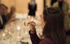 Julia Conlin sips wine during the meet and greet at Truffles Restaurant Wednesday night. As a part of the Bloomington Week of Chocolate, couples and friends were able to have a five course dinner with various different wines.