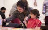 Hila Sela and her daughter Alma from Tel Aviv, Israel paint cherry blossoms for Chinese New Year. Children and their parents created different New Year crafts at the Mathers Museum of World Culture Sunday afternoon.