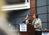 Rise to Run event organizers Rachel Guglielmo (left)and Regina Moore (right) introduce the Rise to Run event in the city council chambers Sunday. Rise to Run is a movement that organizes women to run for political office.