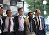 Members of Another Round a cappella group pose before "The Good Catholic" premiere at the Buskirk-Chumley Theater Sunday night. Another Round sang with actor John C. McGinley in the movie.