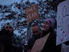A protestor joins in a chant Nov. 16, 2022, outside the Monroe County Courthouse in Bloomington. As protests in Iran have swelled over the past week and the country's internet has gone down, Iranian students haven't been able to contact friends and family back home.