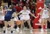 Senior guard Shay Ciezki directs her teammates against Michigan on Jan. 29, 2026, at Simon Skjodt Assembly Hall in Bloomington. Ciezki scored 13 points in the Hoosiers' loss to the Wolverines.