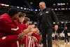 Head coach Darian DeVries calls out to his players during the game against Purdue on Jan. 27, 2026, at Simon Skjodt Assembly Hall in Bloomington. Indiana outscored Purdue 40-29 in the first half.