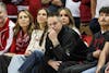 IU football head coach Curt Cignetti looks toward the court during the game against Purdue on Jan. 27, 2026, at Simon Skjodt Assembly Hall in Bloomington. Cignetti sat courtside with his family.