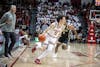 Senior guard Shay Ciezki looks to pass the ball against Washington on Jan. 14, 2026, inside Simon Skjodt Assembly Hall in Bloomington. Ciezki scored 23 points in the game.