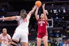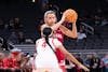 Senior forward Sam Alexis prepares to shoot during the game against Ohio State on March 7, 2026, at the Schottenstein Center in Columbus, Ohio. Alexis scored 14 points.