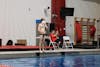 Carson Tyler wipes his face while standing on the side of the pool and watching another dive during a practice Jan. 16, 2026, inside the Counsilman-Billingsley Aquatics Center. Tyler’s coach told him to move over to the side of the pool to practice his form before trying a dive again.