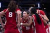 Senior guard Shay Ciezki talks to her teammates during a game against Ohio State in the second round of the Big Ten Tournament on March 5, 2026, at Gainbridge Fieldhouse in Indianapolis. The Hoosiers fell to the Buckeyes 59-83.