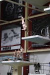 Carson Tyler starts to jump off a platform during the diving team’s practice Jan. 16, 2026, inside the Counsilman-Billingsley Aquatics Center. Tyler competed at the U.S. Olympic Diving Trials in 2021 when he was 16.