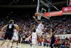 Junior guard Nick Dorn attempts a 3-pointer against Purdue on Jan. 27, 2026, at Simon Skjodt Assembly Hall in Bloomington. Dorn scored 18 points in the Hoosiers' five-point win over the Boilermakers.