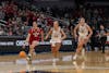 Senior guard Shay Ciezki dribbles down the court during the game against Nebraska in the first round of the Big Ten Tournament on March 4, 2026, at Gainbridge Fieldhouse in Indianapolis. Ciezki made one of the four 3-points shots she took.