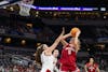 Senior guard Shay Ciezki takes a shot during the game against Nebraska in the first round of the Big Ten Tournament on March 4, 2026, at Gainbridge Fieldhouse in Indianapolis. Ciezki made 10 of her 20 shots.