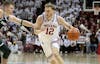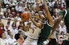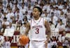 Redshirt senior forward Tucker DeVries dribbles the ball up the court during the game against Michigan State on March 1, 2026, at Simon Skjodt Assembly Hall in Bloomington. DeVries had 12 3-point attempts during the game.