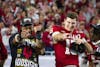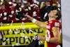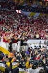 Indiana football players cheer with the crowd after the Hoosiers' national championship win Jan. 19, 2026, at Hard Rock Stadium in Miami Gardens, Florida. The win capped off an undefeated season for Indiana.