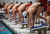 IU men's swimmers line up on the starting blocks to begin the annual Cream and Crimson intrasquad exhibition on Oct. 11, 2024, at the Counsilman-Billingsley Aquatic Center in Bloomington. The Hoosiers captured their fifth straight Big Ten Title on Saturday.
