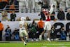 Sophomore wide receiver Charlie Becker makes a catch during the national championship game Jan. 19, 2026, at Hard Rock Stadium in Miami Gardens, Florida. Becker had 65 yards in the game.
