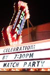 The Buskirk-Chumley Theater sign announces the College Football Playoff National Championship watch party at 9:30 p.m. Jan. 19, 2026, on Kirkwood Avenue in Bloomington. The viewing was preceded by the city's annual Martin Luther King Jr. Day celebration.