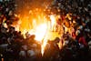 Students crowd a burning couch after Indiana football's College Football Playoff National Championship win at 12:24 a.m. Jan. 20, 2026, on Kirkwood Avenue and Dunn Street in Bloomington. The Bloomington Fire Department put the fire out.