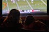IU freshmen Emma Rutledge (left) and Holly Wilkerson (right) watch the game at 9:16 p.m. Jan. 19, 2026, inside the Buskirk-Chumley Theater in Bloomington. They stumbled upon the event after walking down Kirkwood Avenue and seeing people in IU shirts enter the theater.