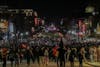 Students and community members fill Kirkwood Avenue on Jan. 19, 2026, in Bloomington after Indiana football's victory the College Football Playoff National Championship. Thousands filled the street after game.