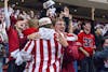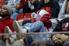 Indiana fans hug in celebration as the Hoosiers become the 2026 College Football National Champions on Jan. 19, 2026, in Simon Skjodt Assembly Hall in Bloomington. Assembly Hall was filled with fans, old and young, cheering on their team.
