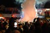 A couch fire is extinguished after Indiana football's College Football Playoff National Championship win at 12:30 a.m. Jan. 20, 2026, on Dunn Street in Bloomington. Indiana State Police managed the crowd around the fire as it was extinguished.