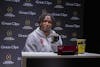 IU head coach Curt Cignetti speaks during media day Jan. 17, 2026, at the Miami Beach Convention Center in Miami Beach, Florida. Cignetti had the second largest media crowd around him during Indiana's availability, with only redshirt quarterback Fernando Mendoza having more people.