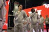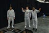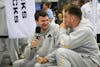 Freshman defensive back Seaonta Stewart Jr. (left), redshirt sophomore defensive back Anthony Chung (middle) and freshman defensive back Zacharey Smith react after losing a game during media day Jan. 17, 2026, at the Miami Beach Convention Center in Miami Beach, Florida. The game was a large themed version of "Guess Who?"