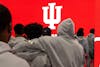Indiana football players leave media availability Jan. 17, 2026, at the Miami Beach Convention Center in Miami Beach, Florida. The entire team was available for interviews for an hour.