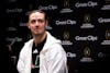 Sixth-year senior Miami quarterback Carson Beck answers questions during media availability Jan. 17, 2026 at the Miami Beach Convention Center in Miami Beach, Florida. The Hurricanes began talking to press at 9:30 a.m.