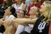 The Indiana softball team celebrates senior Avery Parker’s home run in the game against Missouri Baptist University on Oct. 5, 2025, at the Andy Mohr Field in Bloomington. The Hoosiers went 4-1 at the USF Invitational over the weekend.