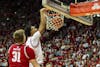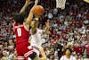 Junior guard Jasai Miles dunks the ball during the game against Wisconsin on Feb. 7, 2026, at Simon Skjodt Assembly Hall in Bloomington. Miles scored four points in the game.