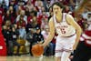 Redshirt senior guard Conor Enright looks toward a teammate during the game against Wisconsin on Feb. 7, 2026, at Simon Skjodt Assembly Hall in Bloomington. Enright played 39 minutes in the game.