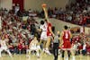 Redshirt senior forward Tucker DeVries celebrates following the game against Wisconsin on Feb. 7, 2026, at Simon Skjodt Assembly Hall in Bloomington. DeVries played 45 minutes of the game.