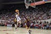 Senior forward Sam Alexis is pictured at the basket against Washington on Jan. 4, 2026, inside Simon Skjodt Assembly Hall in Bloomington. The Hoosiers defeated Maryland 84-66 on Wednesday night.
