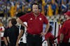 Indiana football head coach Curt Cignetti walks along the sideline Sept. 14, 2024, at the Rose Bowl Stadium in Pasadena, California. The Hoosiers defeated the University of Alabama on Jan. 1, 2026, to advance to the Peach Bowl.