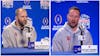 Indiana football offensive coordinator Mike Shanahan (left) and defensive coordinator Bryant Haines (right) speak during media availability for the Peach Bowl on Jan. 7, 2026, at Mercedes-Benz Stadium in Atlanta. Both Shanahan and Haines signed new contracts during the season.