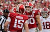 Redshirt senior running back Roman Hemby celebrates with redshirt junior offensive lineman Carter Smith against UCLA on Oct. 25, 2025, at Memorial Stadium in Bloomington. Offensive coordinator Mike Shanahan has worked on Curt Cignetti's staff since 2016.