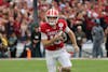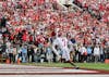 Sophomore Charlie Becker makes a catch in the end zone during the CFP quarterfinal game against Alabama on Jan. 1, 2026, at the Rose Bowl Stadium in Pasadena, California. Becker had one touchdown in the game.