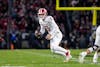 Redshirt junior quarterback Fernando Mendoza rolls out of the pocket looking downfield during the game against Purdue on Nov. 28, 2025, at Ross-Ade Stadium in West Lafayette, Indiana. The Hoosiers earned a bye into the College Football Playoff quarterfinals.
