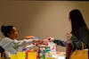 (Left) Service chair Maya Judy hands raffle tickets to an attendee of the Miss Indiana University Scholarship Competition on Feb. 15, 2026, in the Willkie Auditorium in Bloomington. The proceeds from the raffle went to Crimson Cupboard Food Pantry.