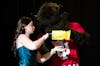Senior Alexia Intravaia and Hoosier the Bison draw raffle tickets stage during the Miss Indiana University Scholarship Competition on Feb. 15, 2026, in the Willkie Auditorium in Bloomington. The raffle had over 140 donations.