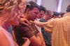 An attendee of the vigil held in Charlie Kirk's honor gets emotional during a prayer led by Chi Alpha pastor Derek Britt on Sept. 14, 2025, at Indiana Memorial Union's Alumni Hall in Bloomington. Britt asked attendees to place their hands on students in the crowd as they prayed for them.