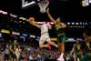 Redshirt senior guard Conor Enright finishes a layup during Indiana's exhibition match against Baylor University on Oct. 26, 2025, at Gainbridge Fieldhouse in Indianapolis. The Hoosiers defeated the Bears 76-74.